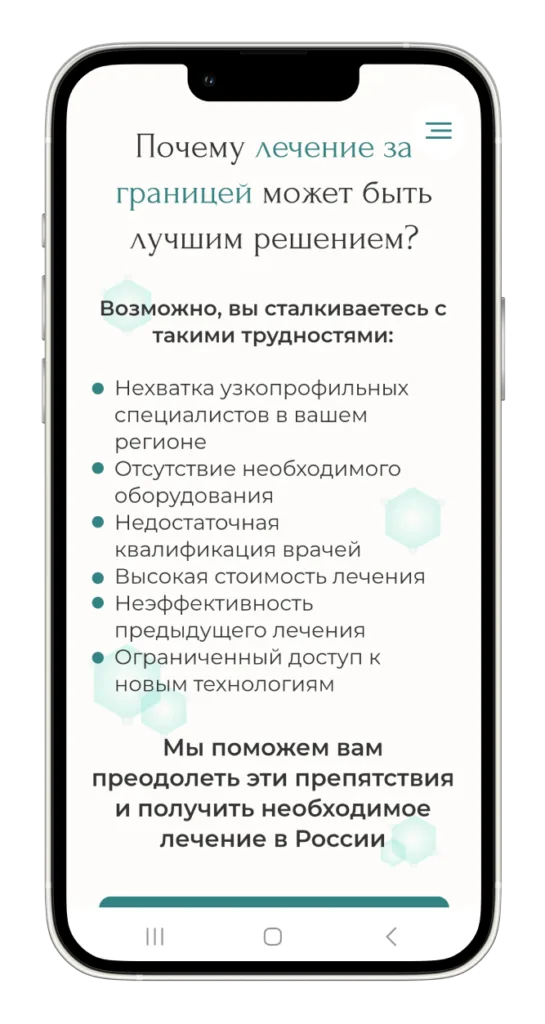 Работа над сайтом RussiaMedAccess была интересным и важным этапом моей работы. Проект позволил мне применить свои навыки в веб-дизайне и разработке для создания ресурса, который помогает людям найти необходимую медицинскую помощь. Я горжусь тем, что внесла свой вклад в развитие медицинского туризма в России. Было приятно работать над проектом с такой важной социальной миссией.